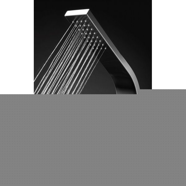 Новий вимір дизайну душових панелей. Без сумнівів ця модель буде одним з найцікавіших елементів вашої ванної кімнати. Альо інноваційний дизайн - це ще не усе. Вас здивує множина у функцій і можливостей, які пропонує ця панель. Верхній душ складається з 32 форсунок, а максимальний комфорт під час прийняття душу забезпечать 3 додаткових гідромасажних форсунки.