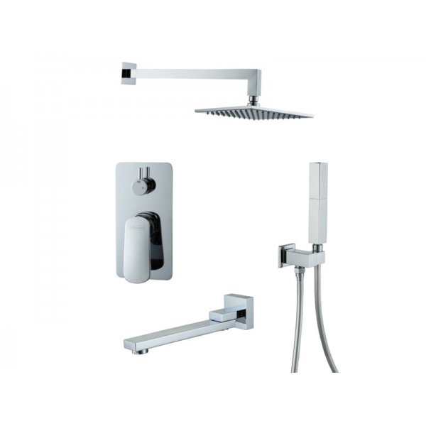 Душова система: - виконана у кольорі хром; - прихований монтаж; - Розмір верхнього душу 200 мм; - верхній душ тропічного типу - розміри ручної лійки 30*180 мм; - 2 режими перемикання лійки; - Змішувач для ванни в комплекті; - верхній душ та ручна лійка виконані з латуні; - вага комплекту душової системи брутто 6,1 кг; - Маса нетто 5,3 кг; - Довжина шланга 150 см; - система проти шкурування шланга - країна-виробник Іспанія; - Гарантія 5 років.