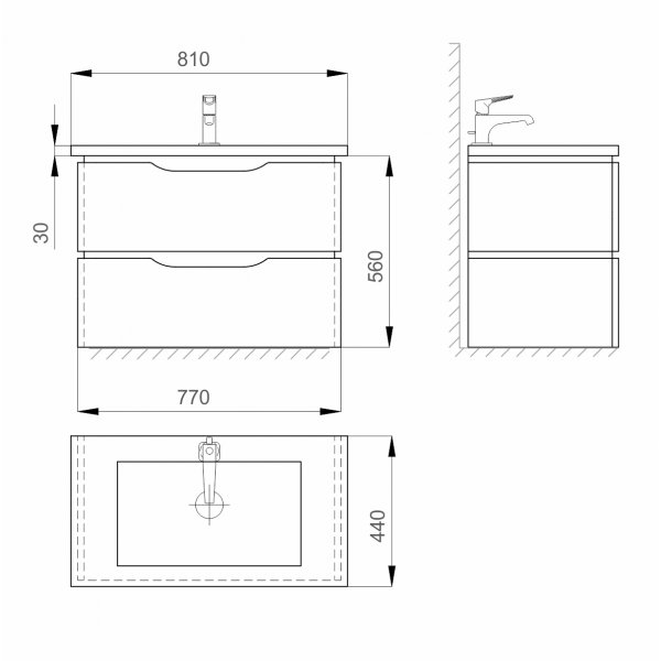 Купити Тумба ALESSA AIR 80 з умивальником Канте, колір венге 2 фасада