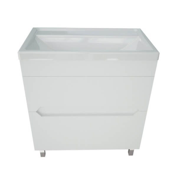 Корпус тумби для ванної кімнати виготовлений з якісного ламінованого двостороннього ДСП, фасад виготовлений з вологостійкого фарбованого МДФ, бездоганної австрійської фурнітури Blum та плавних дотягувачів для висувного ящика. Мебель підходить для надмірно вологих середовищ, вона стійка до зміни вологості та зміни температурних режимів.