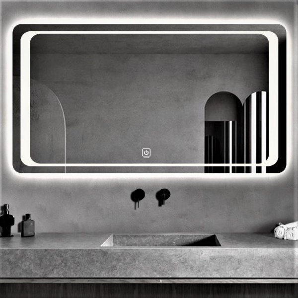 Зеркала, DUSEL (Австрія), 100*75|*|хром|*|5000 часов|*|12 месяцев|*|прямоугольная|*|5мм|*|Зеркало с LED подсветкой|*|с сенсором и подогревом|*|настенный|*|