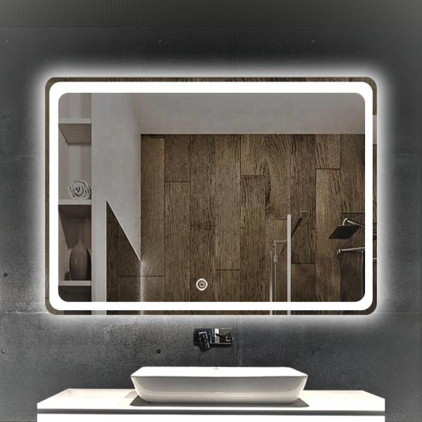 Зеркала, DUSEL (Австрія), 80*65|*|хром|*|5000 часов|*|12 месяцев|*|прямоугольная|*|5мм|*|Зеркало с LED подсветкой|*|с сенсором и подогревом|*|настенный|*|