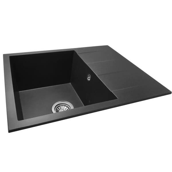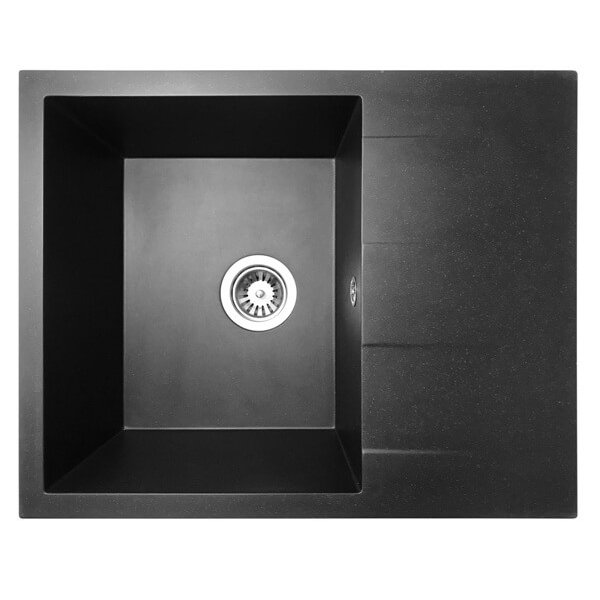 Недорого Кухонна гранітна мийка прямокутна з крилом ЧОРНА К02 Policomposite 620*500*220