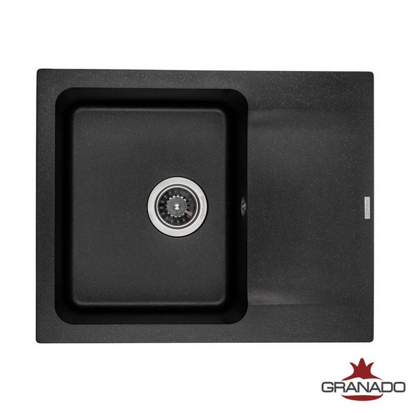 Недорого Кухонна гранітна прямокутна з крилом мийка Granado AVILA чорна 615*495*190мм