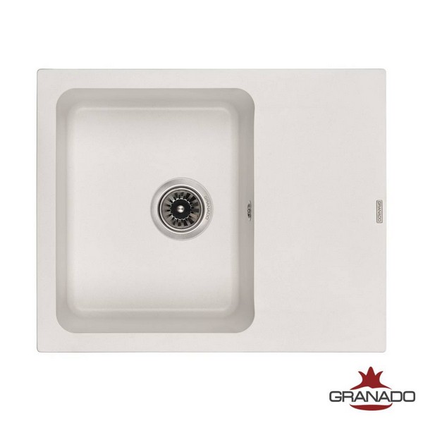 Недорого Кухонна гранітна прямокутна з крилом мийка Granado AVILA white біла 615*495*190мм