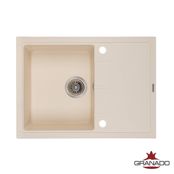 Недорого Кухонна гранітна прямокутна з крилом мийка Granado BLANOS ivory кремова 680*500*205мм