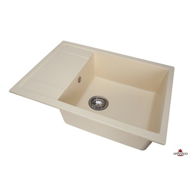 Недорого Кухонна гранітна прямокутна з крилом мийка Granado LINARES ivory кремова 675*495*200мм