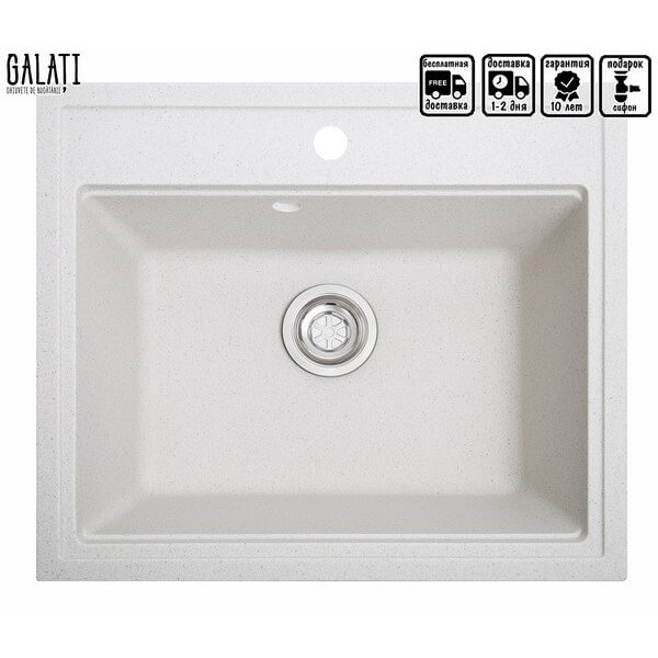 Характеристики Матеріал граніт Форма квадратна Наявність крила немає Тип установки врізна Кількість чаш 1 Отвір під змішувач є Сифон Євро-сифон італійського виробника "L.B.Plast" входить в комплект Колір вироба Білий Габарити мийки (ШхГхВ) 60х52х19,2 см Габарити чаші (ШхГхВ) 52х38х20 см