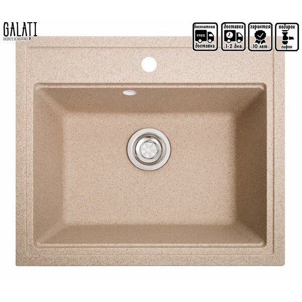 Характеристики Матеріал граніт Форма квадратна Наявність крила немає Тип установки врізна Кількість чаш 1 Отвір під змішувач є Сифон Євро-сифон італійського виробника "L.B.Plast" входить в комплект Колір вироба Пісок Габарити мийки (ШхГхВ) 60х52х19,2 см Габарити чаші (ШхГхВ) 52х38х20 см