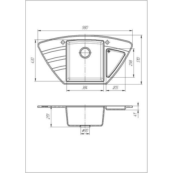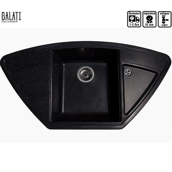 Кухонная мойка угловая трапеция из искуственного камня Galati Jorum 98B Antracit (901) чёрная 98х51х21,7см