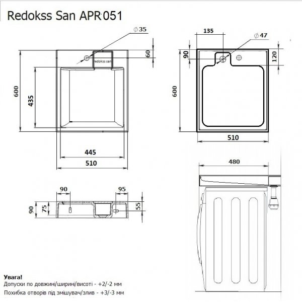 Купити за ціною виробника Умивальник на пральну машину Redokss San PROTON 51x60см