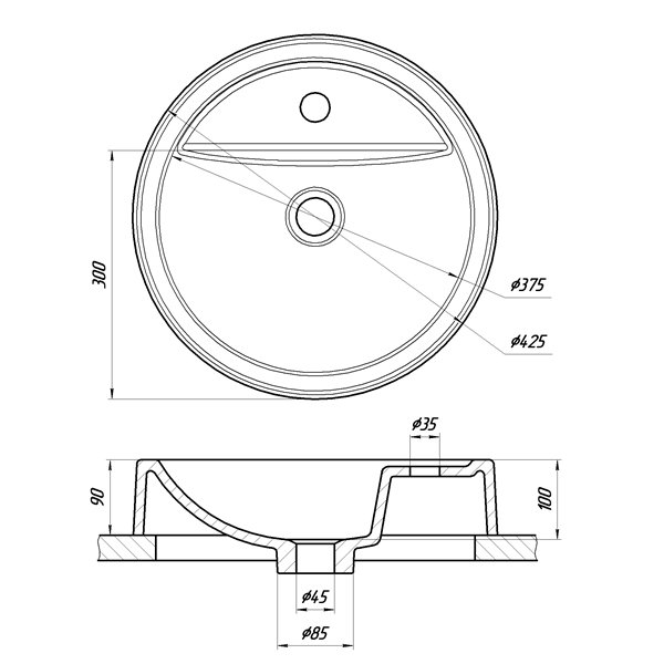 Умивальник РОНДО виконаний у формі круглої чаші, яка може розташовуватися на стільниці. Умивальник виглядає гармонійно, акуратно і привабливо. Він дуже практичний і функціональний так як має оптимально зручний розмір чаші.
