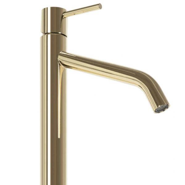 Представляємо вам гарний, надзвичайно функціональний та сучасний змішувач. Це продукт, який ідеально заповнить простір ванної кімнати, зберігши при цьому бездоганний зовнішній вигляд та естетику інтер'єру. Змішувач пристосований для встановлення на стільницю поруч із умивальником. Він був виготовлений із латуні, покритої золотою поверхнею. Завдяки спеціальній виробничій фазі він довговічний та легко миється.