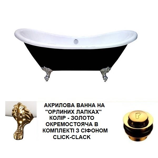 Купити не дорого Ванна окремо стояча акрилова чорна Atlantis C-3140 колір ніжок золото 176х75х75